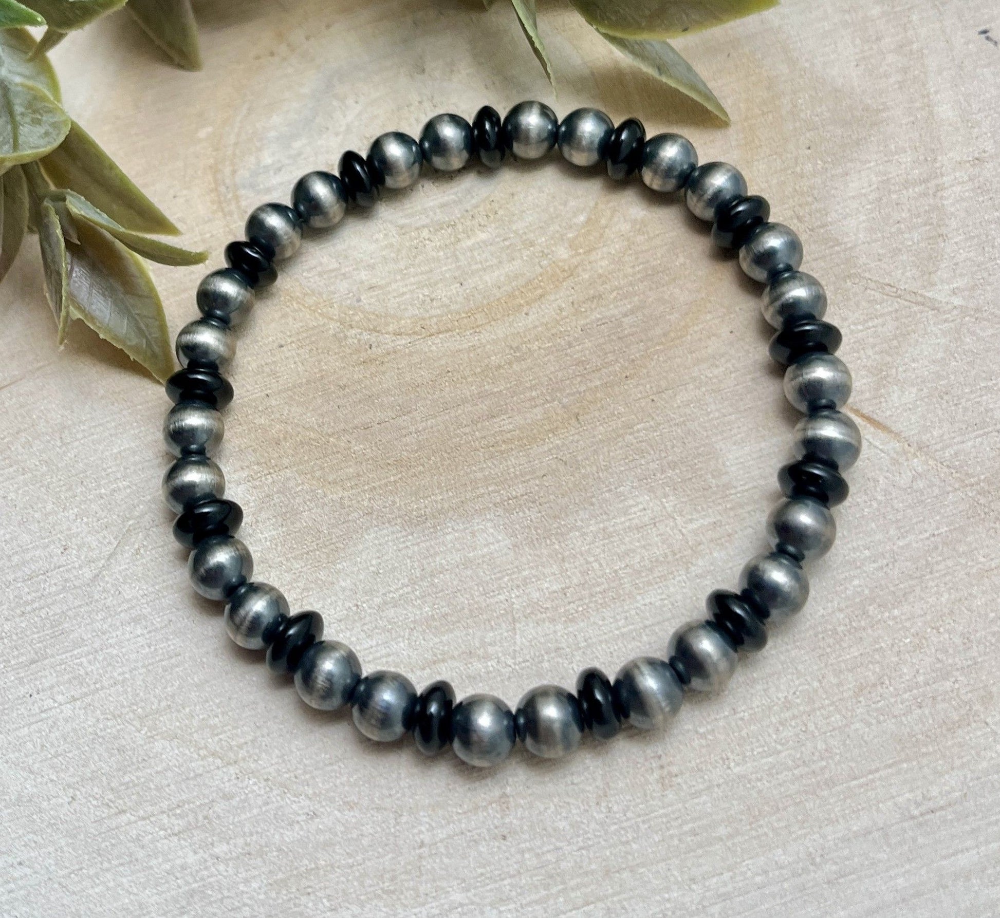 6mm Desert Pearls & Onyx Stretch Bracelet