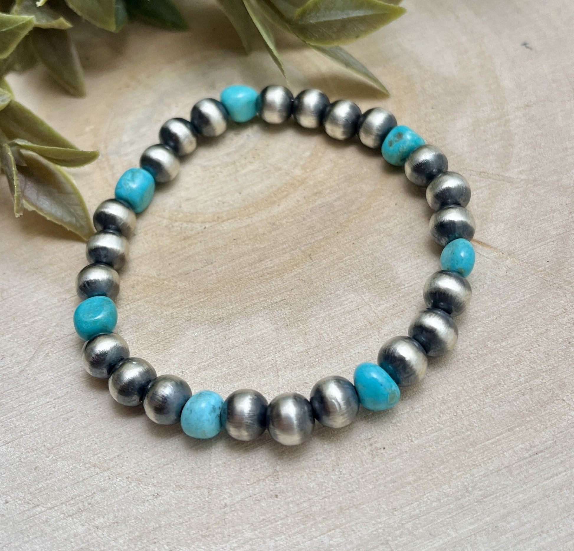 7mm Desert Pearls & Turquoise Stretch Bracelet