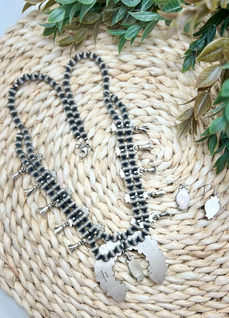 Blue Ridge Turquoise Squash Blossom Necklace and Earring Set