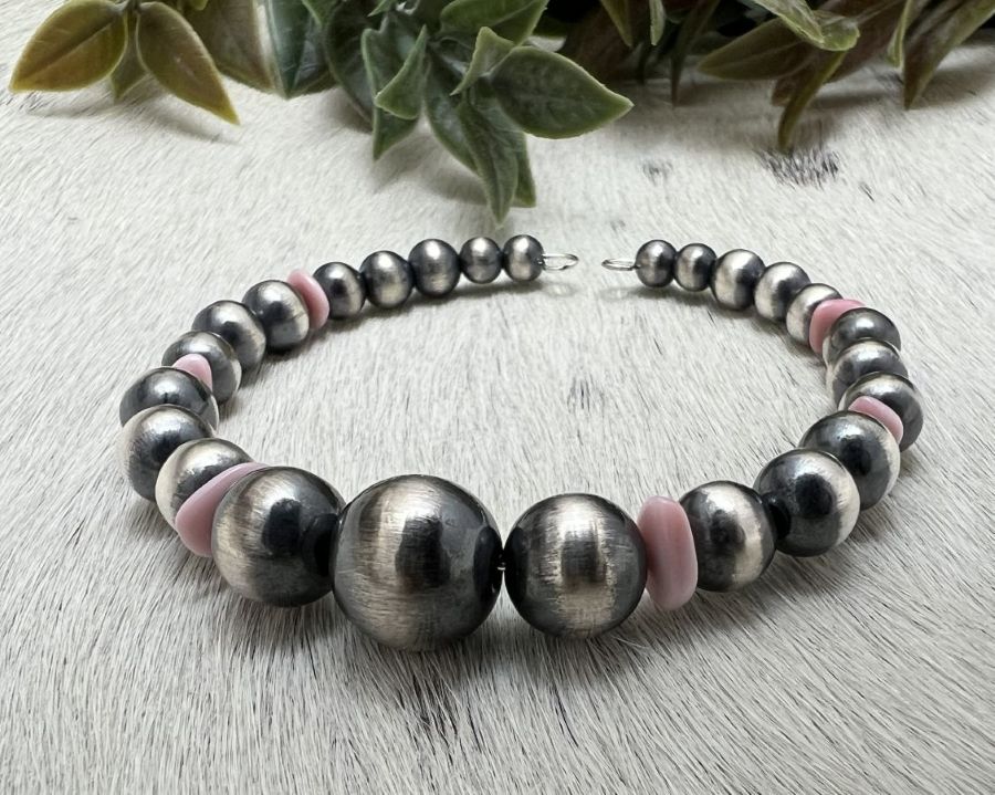Desert Pearls & Pink Conch Graduated Bead Memory Wrap Bracelet